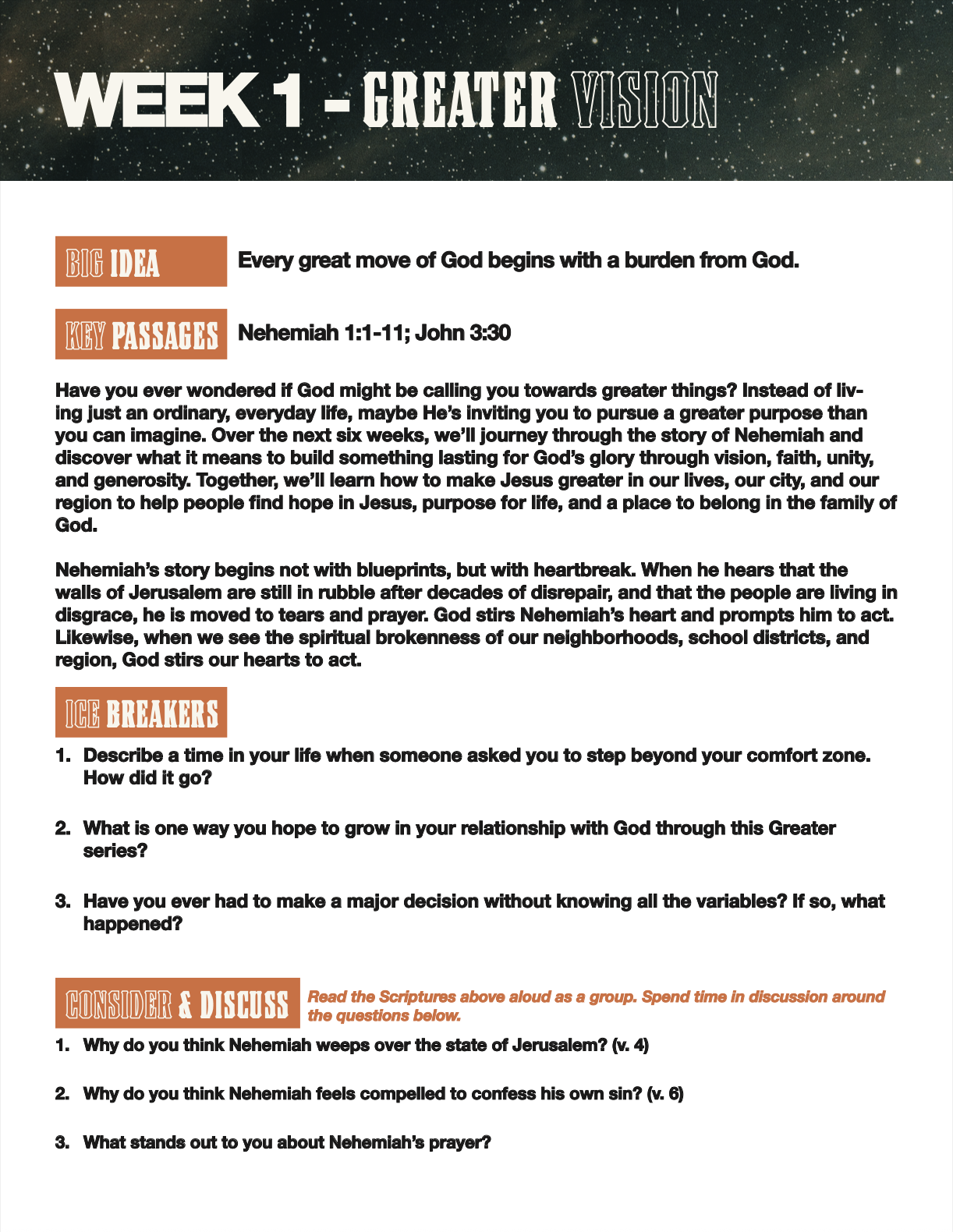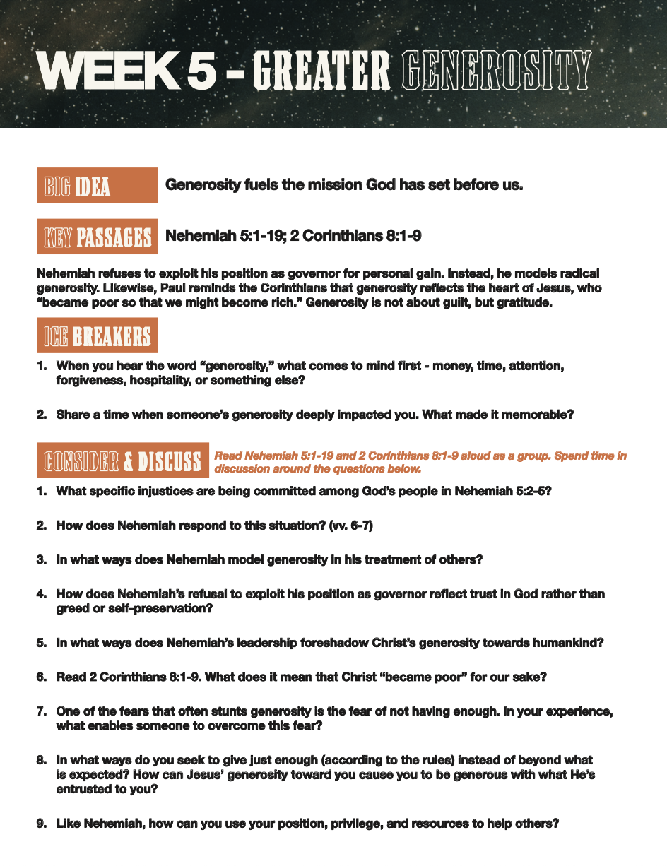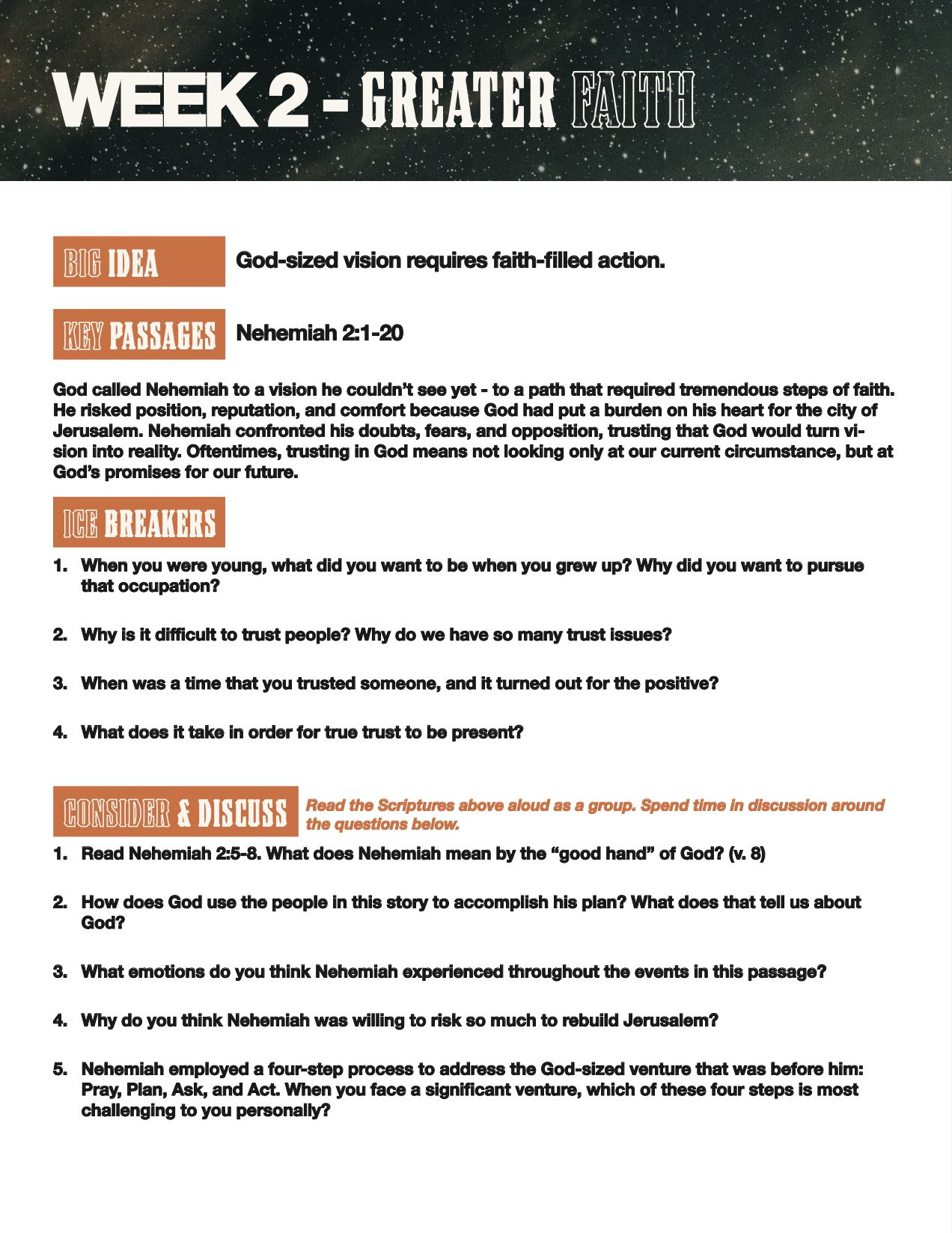 During this season, we will seek to walk boldly with God-sized vision and trust that He will call us to greaterfaith, dependance, and Kingdom impact.