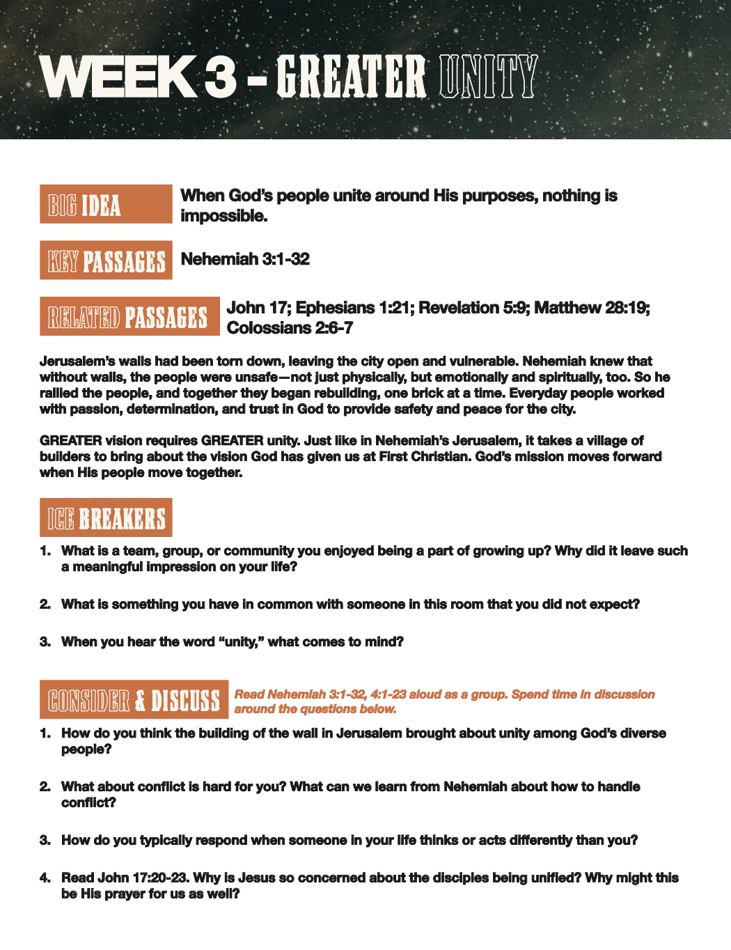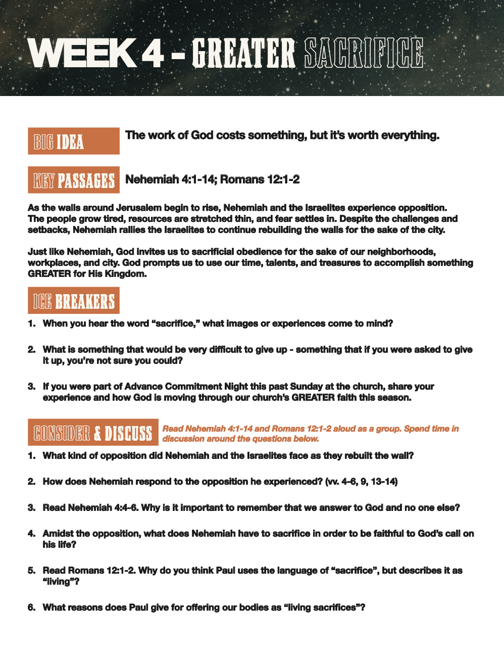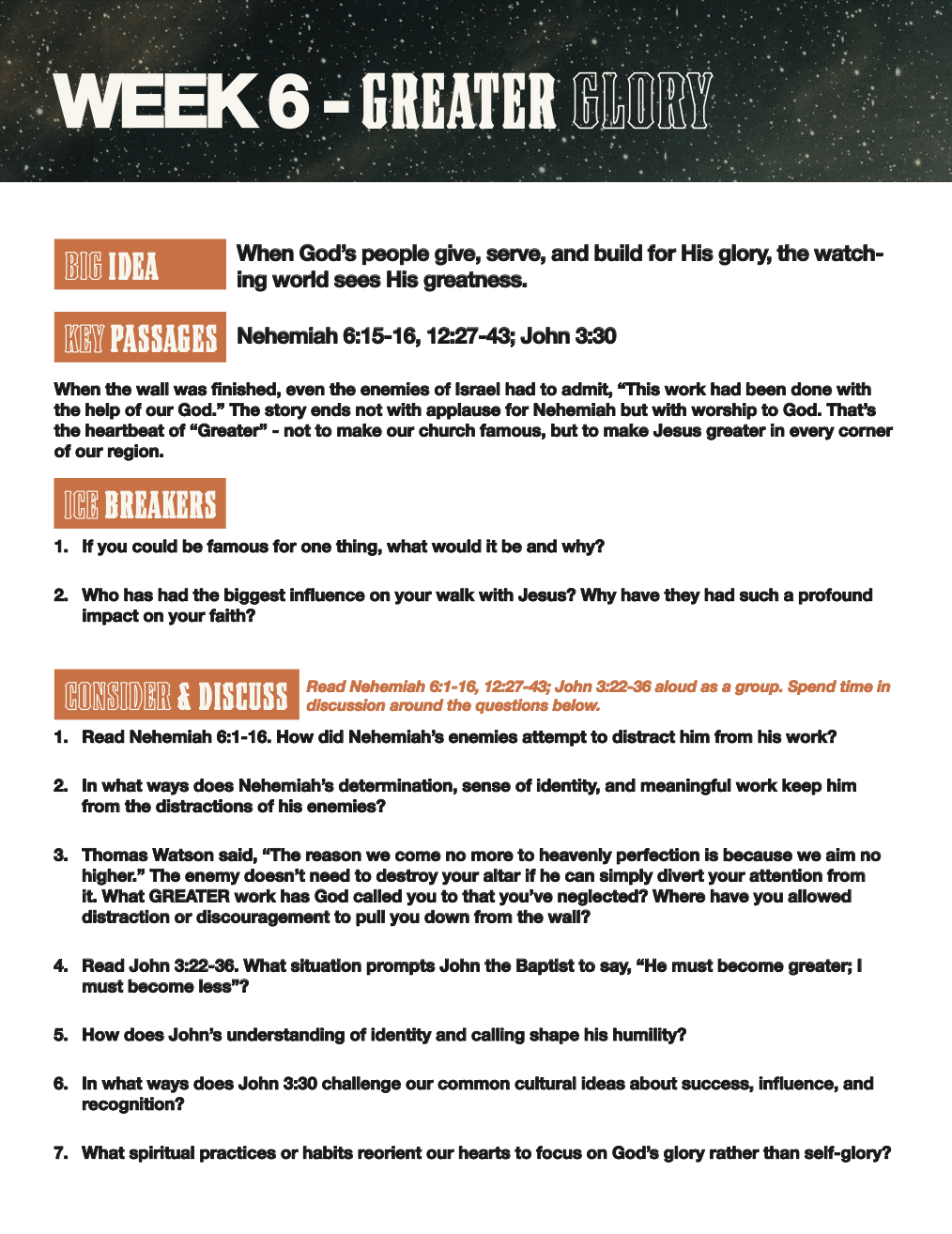 During this season, we will seek to walk boldly with God-sized vision and trust that He will call us to greaterfaith, dependance, and Kingdom impact.